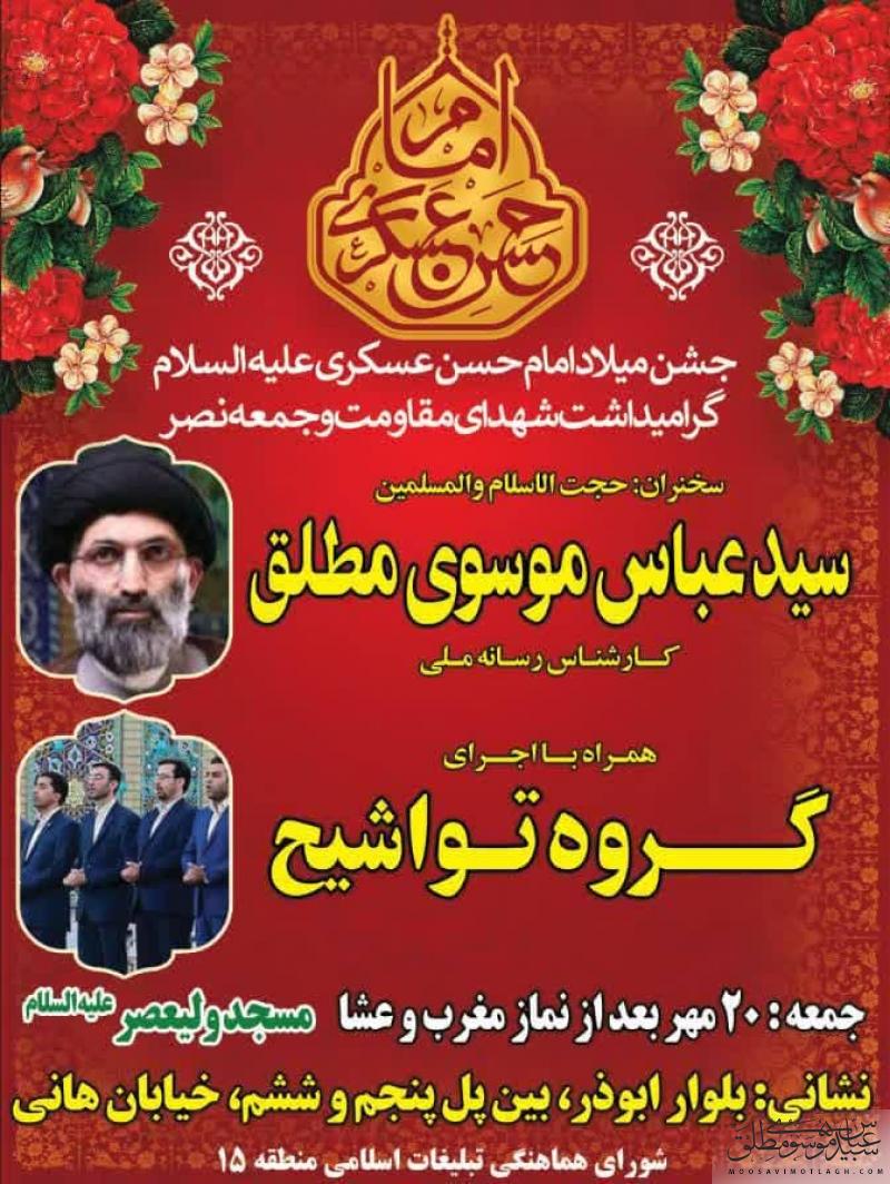 برنامه سخنرانی حجت الاسلام موسوی مطلق در میلاد حضرت امام حسن عسکری علیه السلام