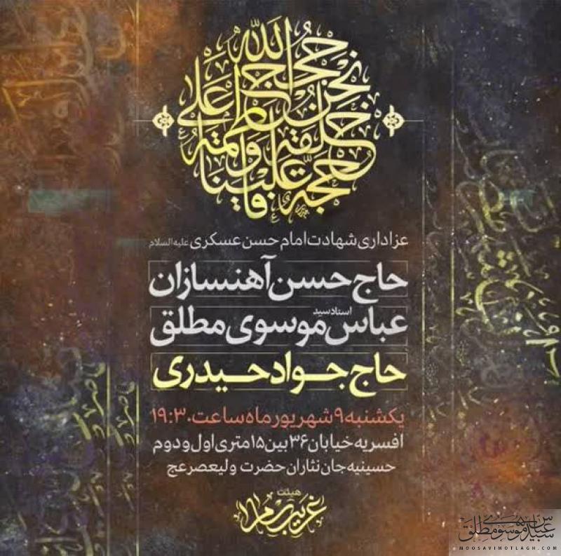برنامه سخنرانی استاد موسوی مطلق در شب شهادت حضرت امام حسن عسکری علیه السلام