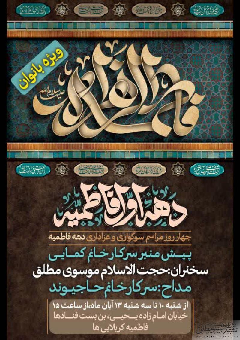 برنامه سخنرانی حجت الاسلام موسوی مطلق در ایام فاطمیه اول ۱۴۰۴ ویژه بانوان