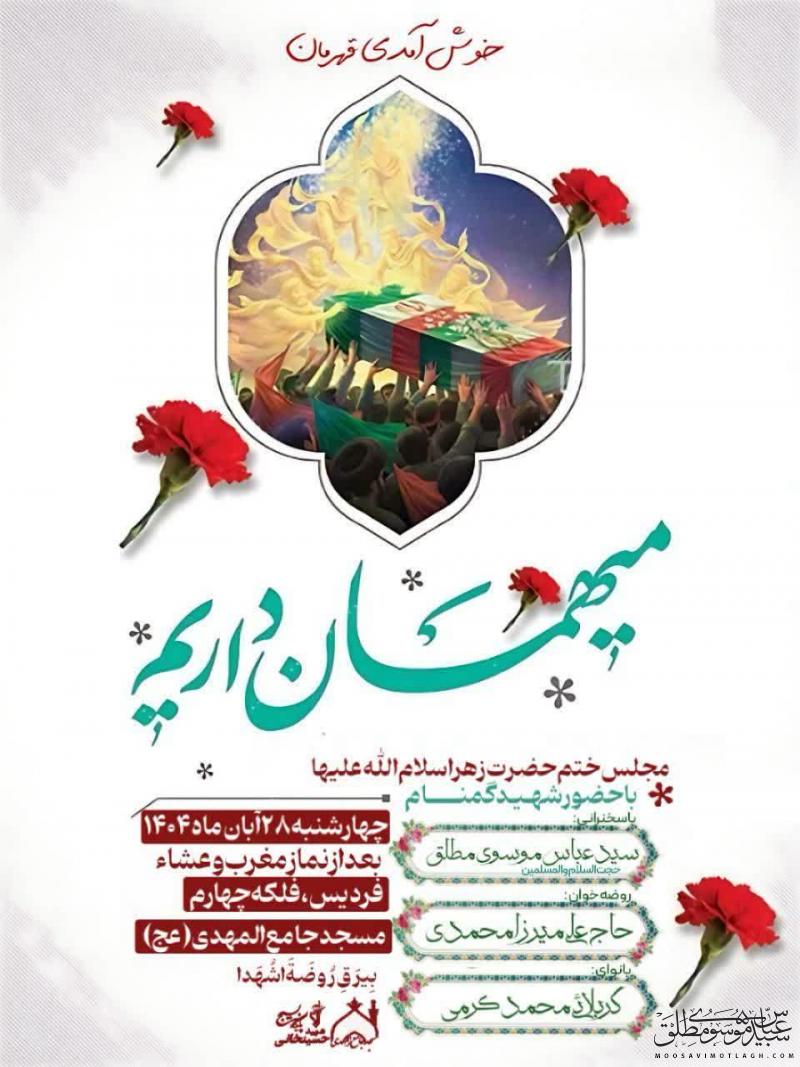 برنامه سخنرانی حجت الاسلام سیدعباس موسوی مطلق در ایام فاطمیه ۱۴۰۴ فردیس