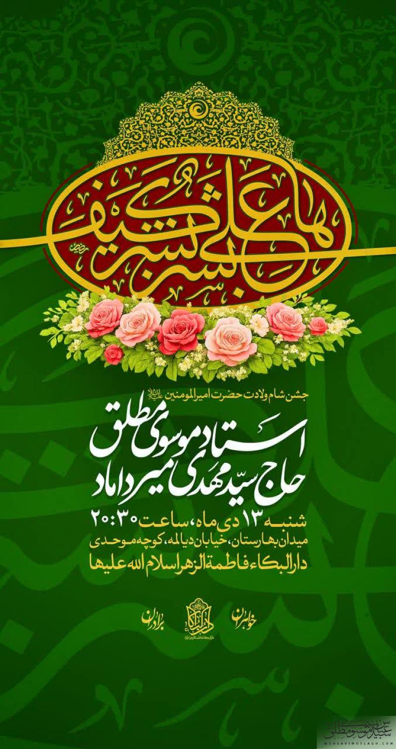 برنامه سخنرانی حجت الاسلام موسوی مطلق در شام ولادت حضرت امام علی علیه السلام