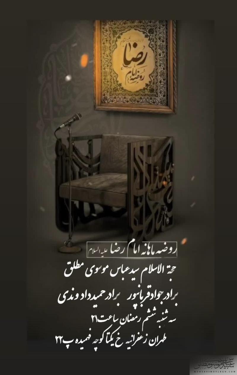 برنامه سخنرانی حجت الاسلام موسوی در روضه ماهانه امام رضا علیه السلام