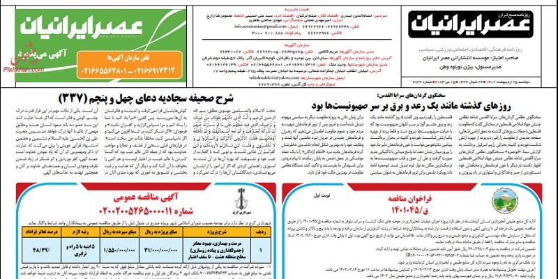 دوشنبه 25 اردیبهشت 1402 شماره 3832